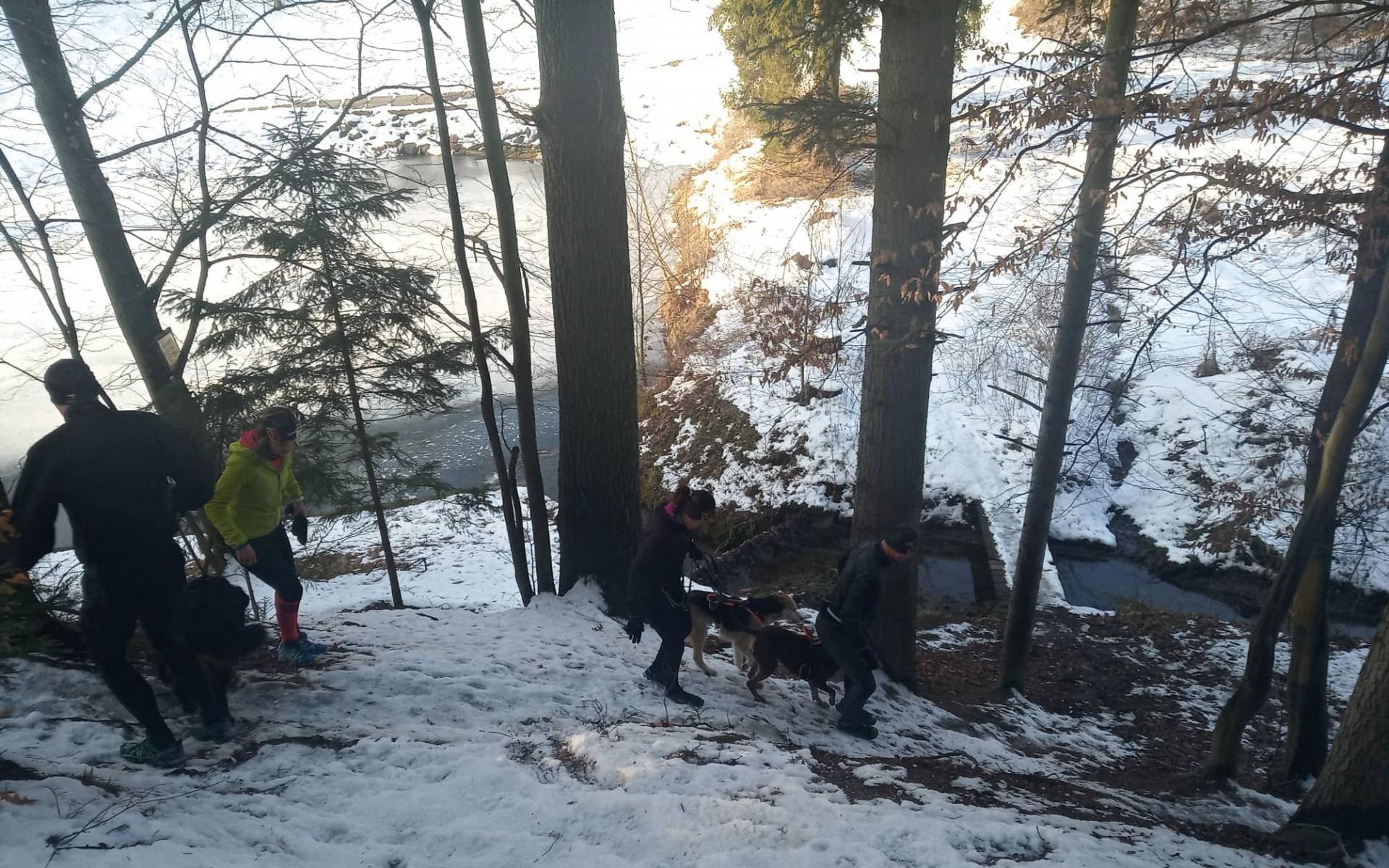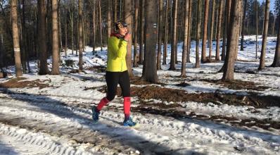I přes oteplení v lese stále ještě hodně sněhu. Náročných 19 km jak profilem, tak povrchem. Převážně lesní okruh s nejvzdálenějším bodem na trase - zříceninou klášteru Kartouzka postavený přísným mnišským řádem Kartuziánů.